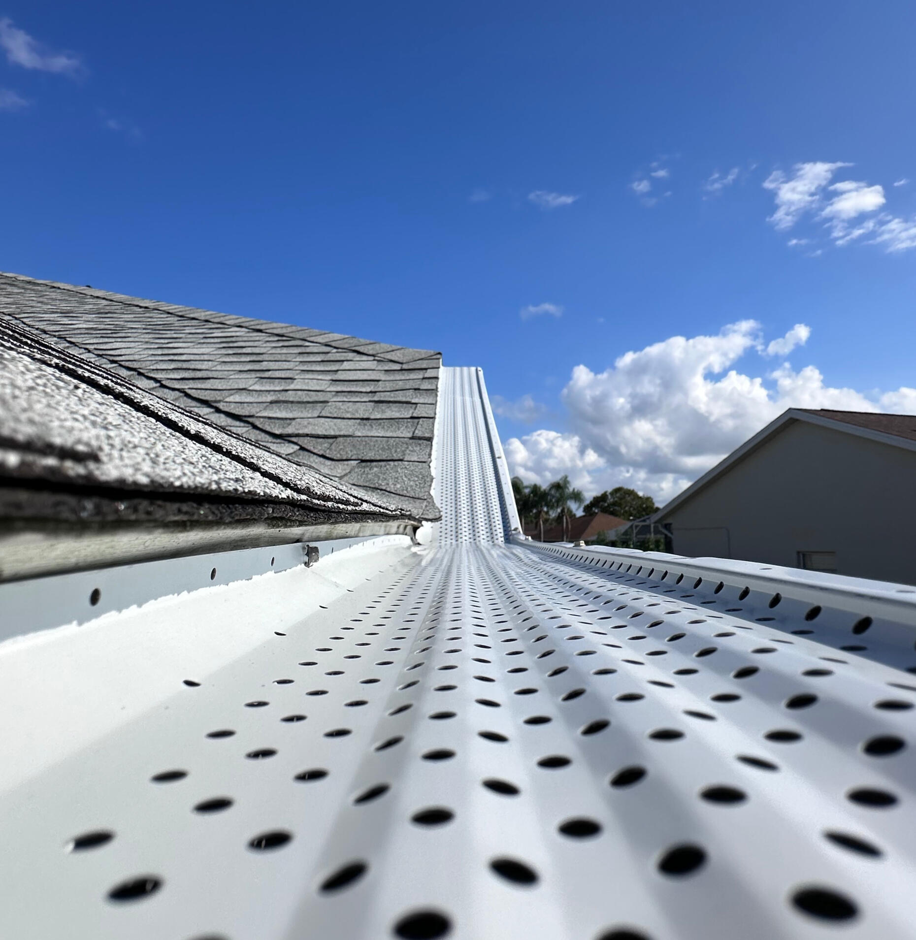 Every seamless rain gutter is custom-formed at your property using premium aluminum coil — no seams, no leaks, no shortcuts. Our gutters are engineered to handle Florida’s heavy rainfall and protect your home from water damage year after year.Gutter Cleaning, Guards & Leaf Protection